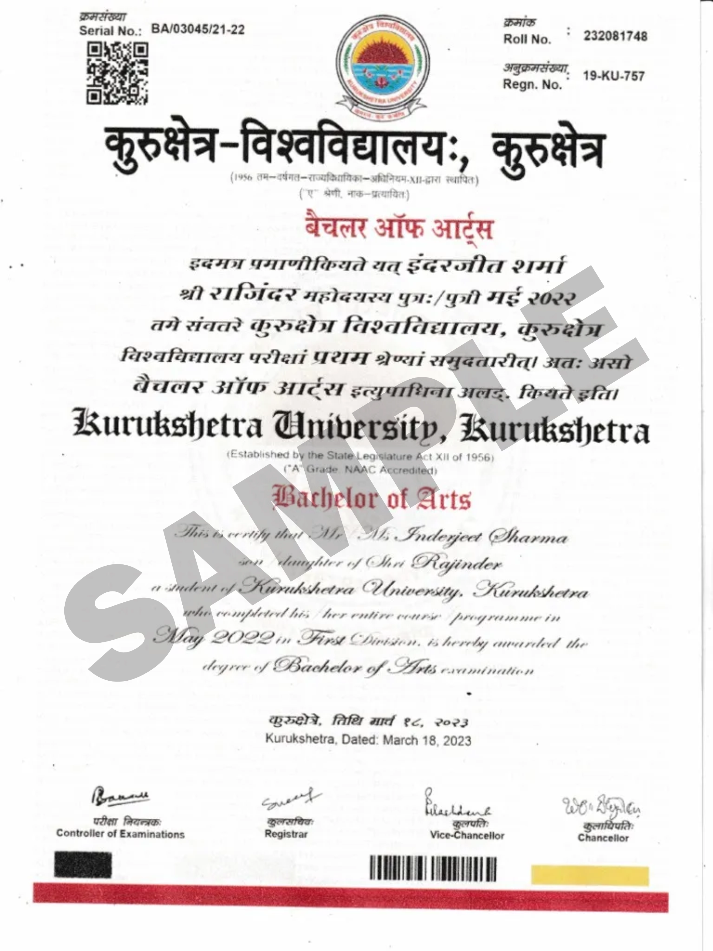 Kurukshetra University is also known for its active research output and has a notable alumni base, including prominent figures like Jagjit Singh (Ghazal singer), Sushma Swaraj (former Union Minister), and Surya Kant (Supreme Court Judge), among others.